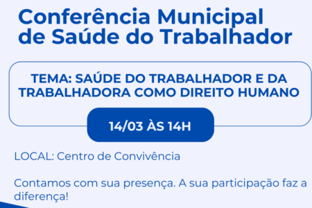 Conferência Municipal de Saúde do Trabalhador será no dia 14 de março
