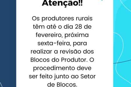 Prazo para revisão dos Blocos do Produtor termina na sexta-feira
