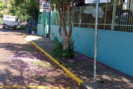 Prefeitura realiza manutenção da sinalização viária próximo às escolas