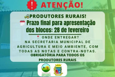 Prefeitura de Coronel Barros alerta para prazo de apresentação dos blocos de produtores rurais
