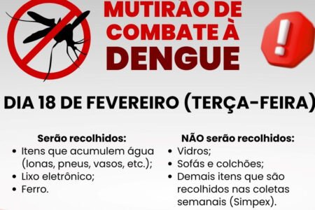 Vigilância Ambiental vai realizar novo mutirão de limpeza