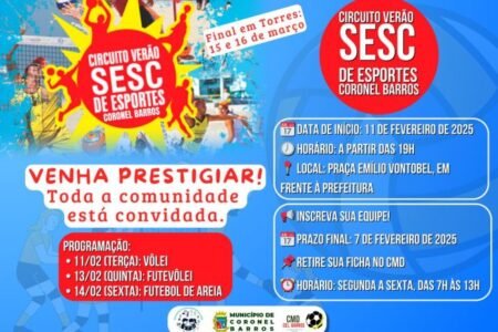 Circuito Verão Sesc de Esportes 2025 inicia em Coronel Barros no dia 11 de fevereiro