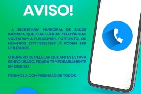 Atenção para o contato telefônico da Secretaria Municipal de Saúde