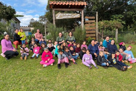 CRIANÇAS VISITAM O HORTO DE PLANTAS BIOATIVAS E VIVENCIAM APRENDIZADOS SENSORIAIS.