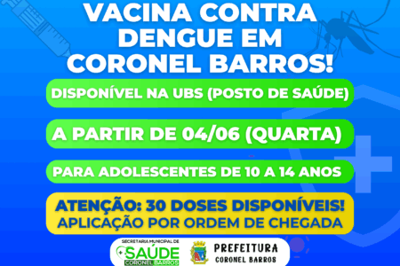 VACINA CONTRA DENGUE EM CORONEL BARROS!