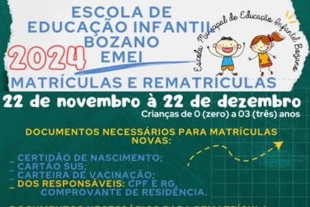 Períodos de matrículas e rematrículas na rede municipal de ensino