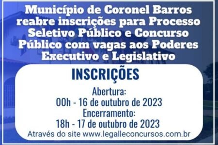 Município de Coronel Barros reabre inscrições para Concurso Público e Processo Seletivo