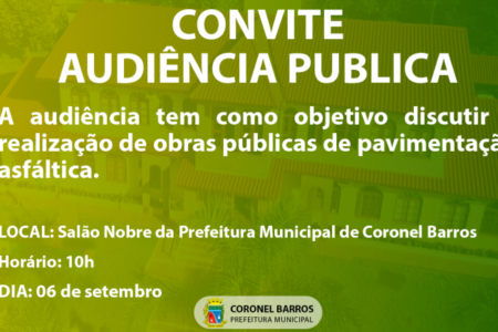Prefeito de Coronel Barros convoca população para audiência pública sobre obras de pavimentação asfáltica