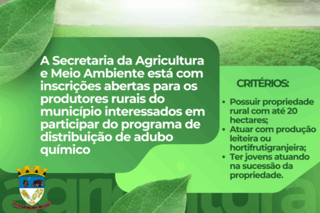 Secretaria de Agricultura e Meio Ambiente abre inscrições para programa de distribuição de adubo químico